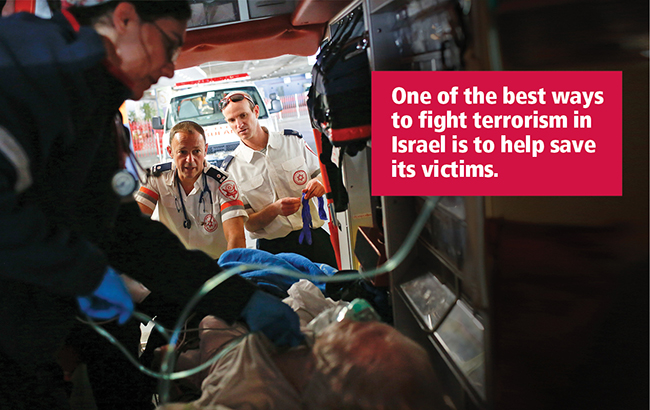 | With Israelis grappling with nearly daily acts of terrorism, you can help ensure that those injured don't join the list of those killed. Your support of Magen David Adom, Israel's national EMS service, provides the equipment, supplies, and on-going training to keep MDA the preeminent mass-casualty medical response organization in the world. | |